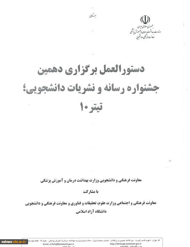 امتیاز دهید : دستورالعمل برگزاری دهمین جشنواره سراسری رسانه و نشریات دانشجویی (تیتر10) شنبه 4 دی 1395 ساعت 10:37