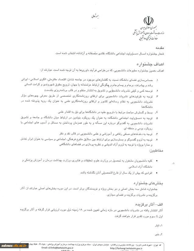 امتیاز دهید : دستور العمل برگزاری دهمین جشنواره سراسری رسانه و نشریات دانشجویی (تیتر10) شنبه 4 دی 1395 ساعت 10:38