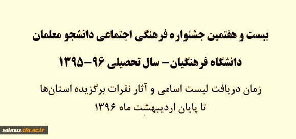 بیست و هفتمین جشنواره فرهنگی اجتماعی دانشجو معلمان دانشگاه فرهنگیان- سال تحصیلی 96-1395