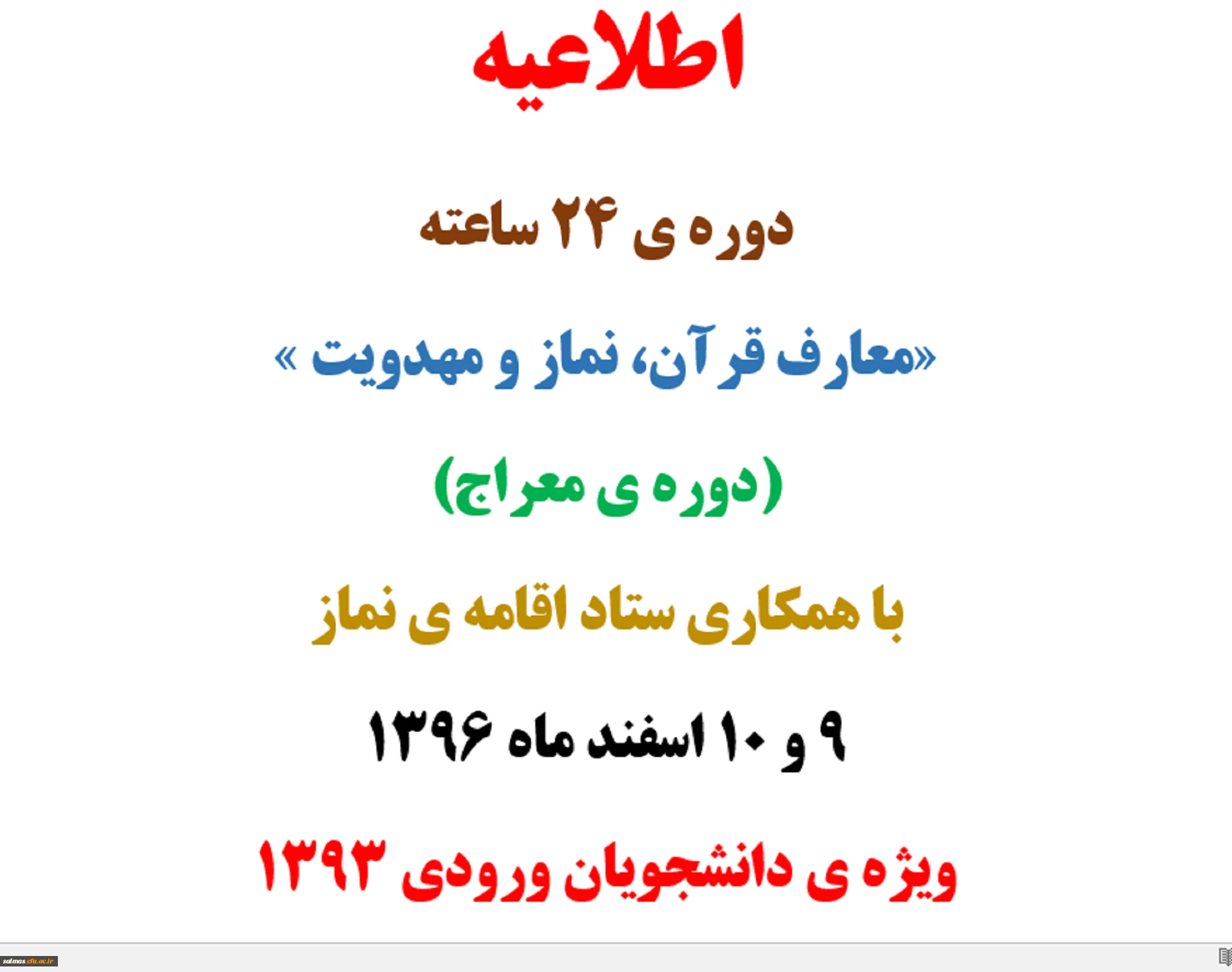 دوره ی ۲۴ ساعته «معارف قرآن، نماز و مهدویت» با همکاری ستاد اقامه نماز ویژه ی دانشجویان ورودی 1396