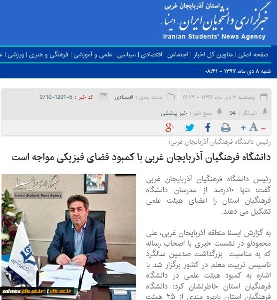 بازتاب رسانه ای نشست خبری مدیریت امور پردیس های دانشگاه فرهنگیان استان آذربایجان غربی در سایتهای محلی