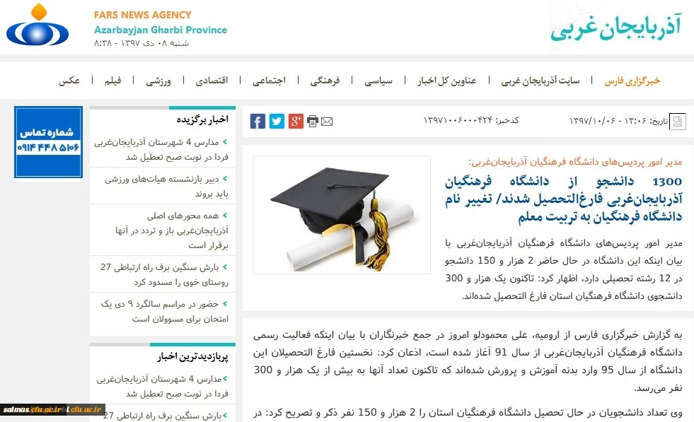 بازتاب رسانه ای نشست خبری مدیریت امور پردیس های دانشگاه فرهنگیان استان آذربایجان غربی در سایتهای محلی