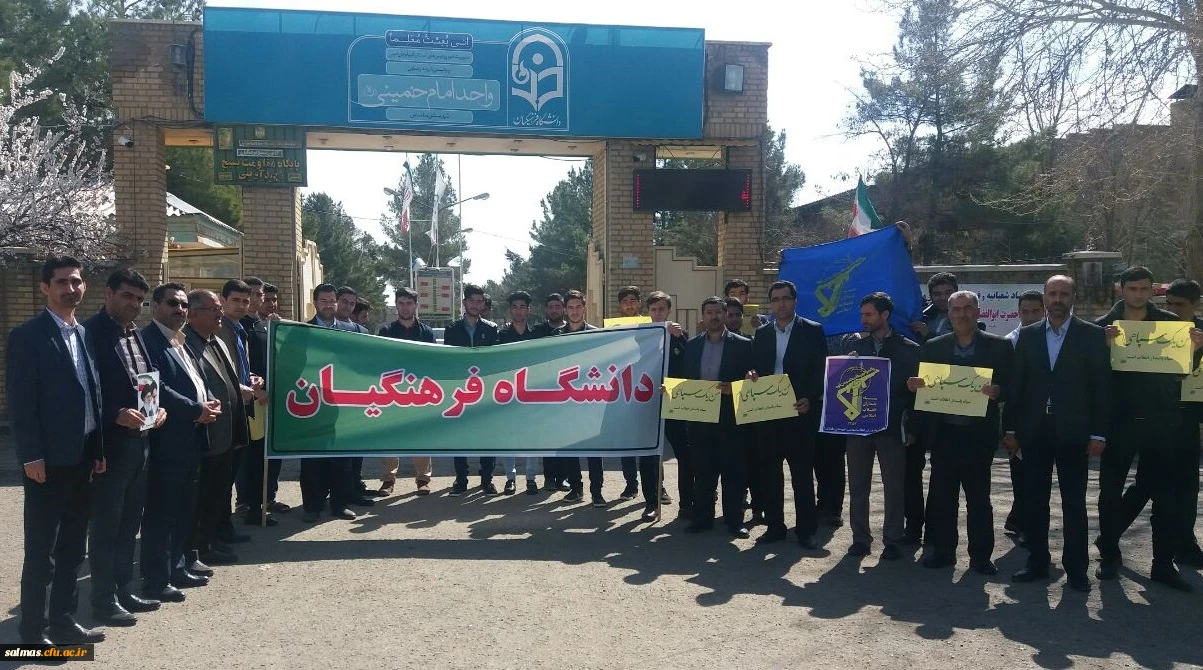 تجمع اعتراضی اساتید و کارکنان و دانشجویان دانشگاه فرهنگیان سلماس در محکومیت اقدام خصمانه دولت آمریکا