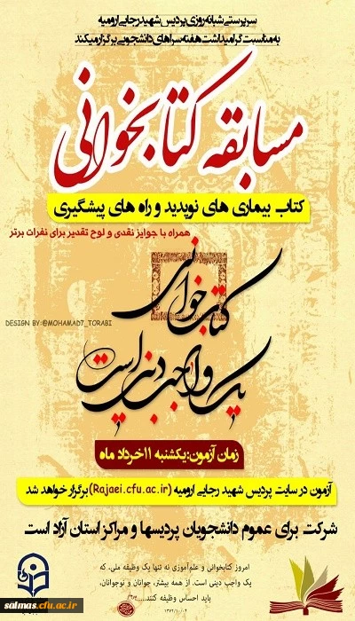 مسابقه کتابخوانی به مناسبت هفته سراهای دانشجویی برای کلیه دانشجویان دانشگاه فرهنگیان استان برگزار می شود