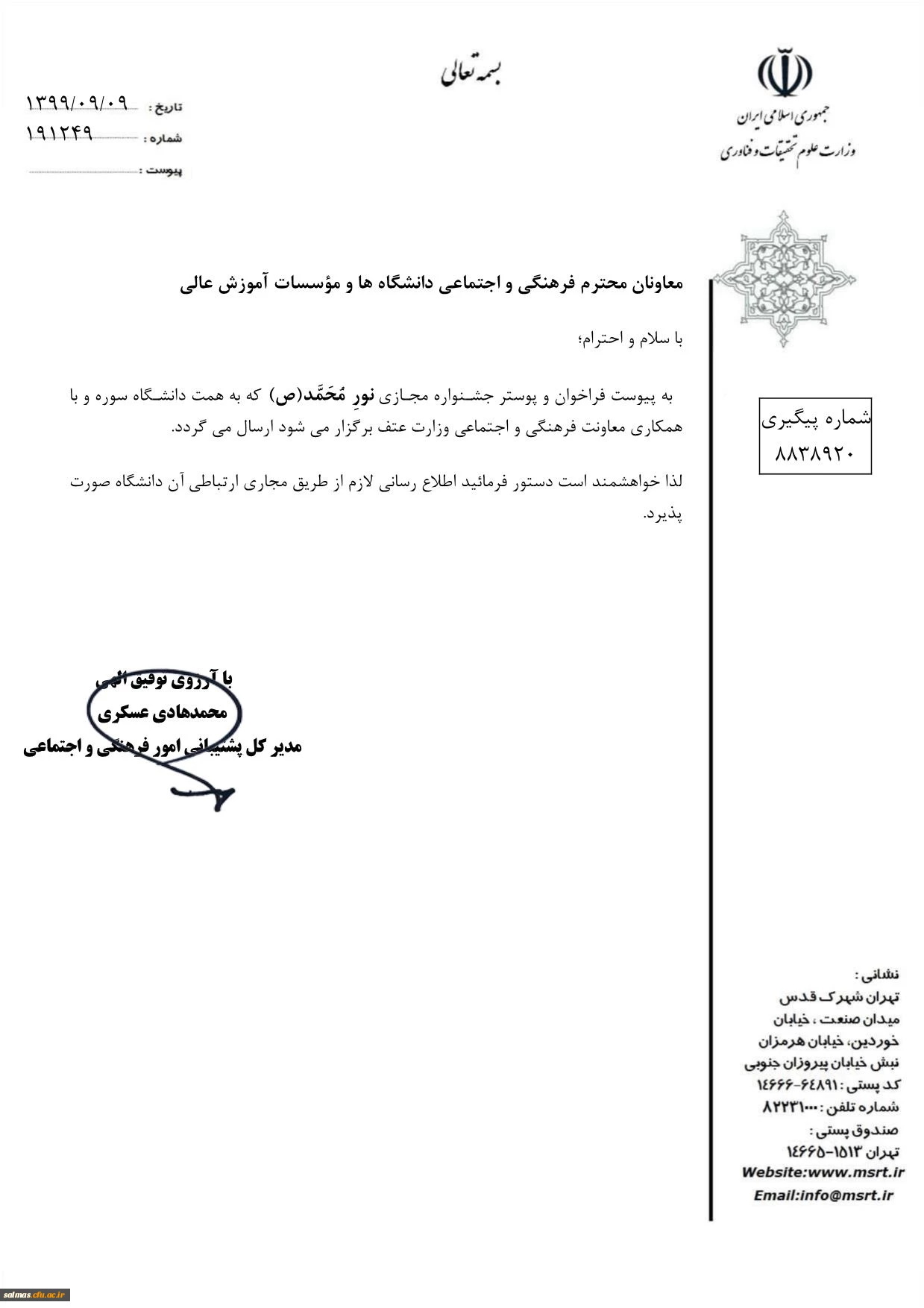 فراخوان جشنواره مجازی دانشجویی نور محمد(ص)