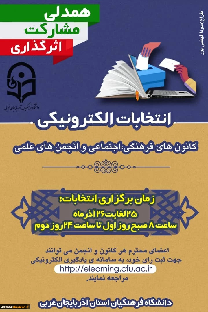 امتیاز دهید : انتخابات الکترونیکی کانون های فرهنگی، اجتماعی و انجمن های علمی دوشنبه 24 آذر 1399 ساعت 8:32